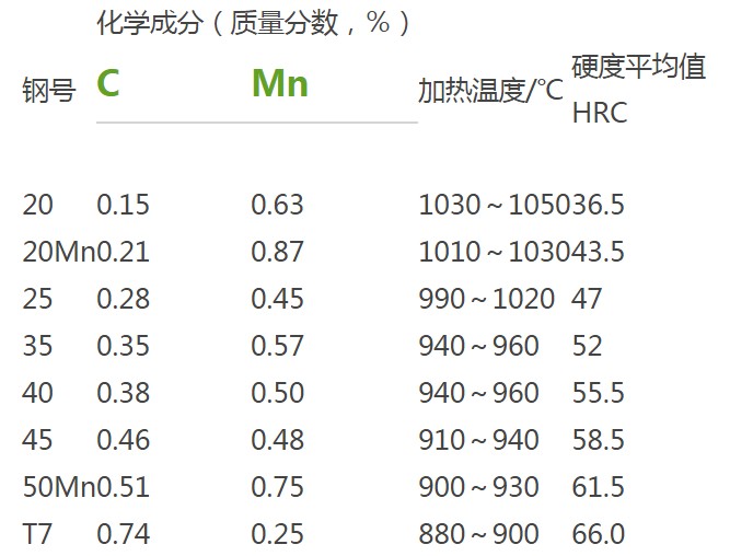 表1是幾種常用鋼感應(yīng)淬火后所達(dá)到硬度值。
